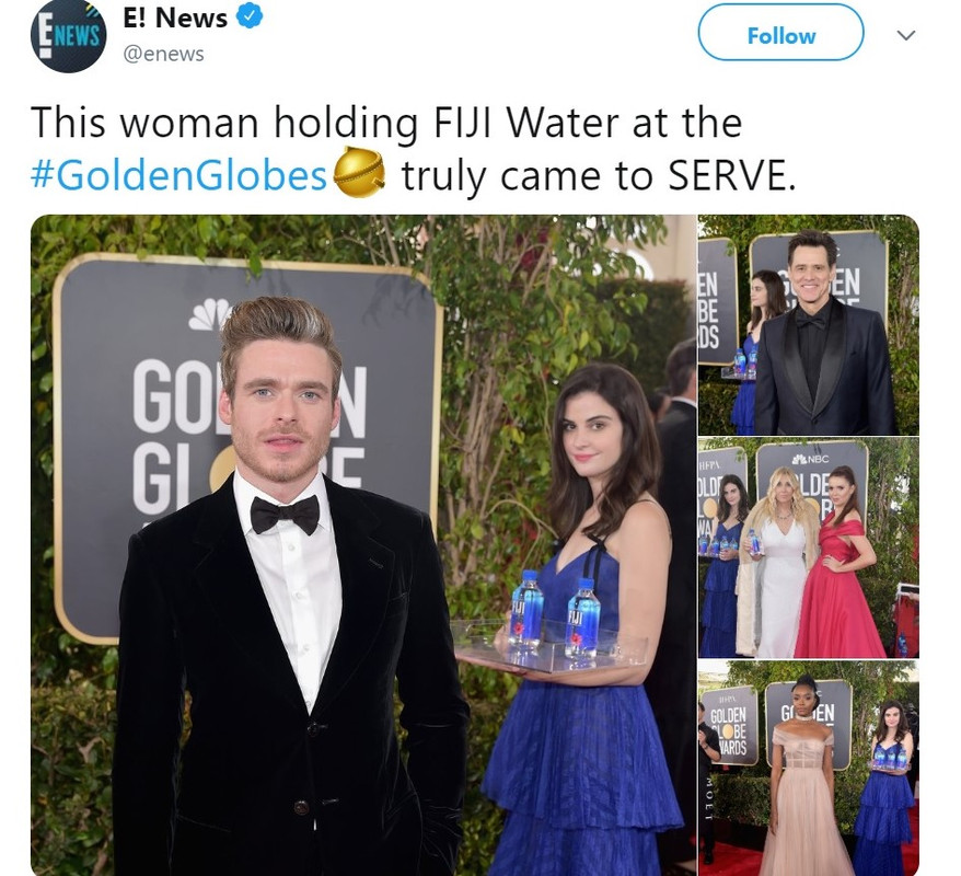 Gadis cantik pembawa minum air mineral Fiji di Golden Globe Awards 2019 mencuri perhatian netizen di seluruh dunia.
