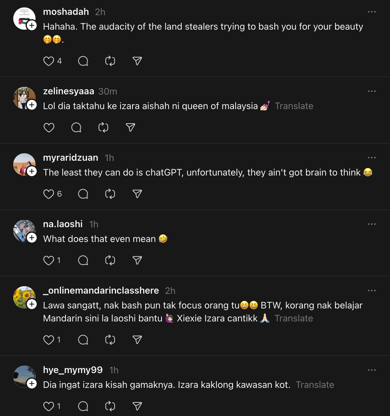Perbandingan itu mencetuskan pelbagai reaksi netizen — ada yang terhibur, ada yang menganggap ia sindiran halus terhadap Zionis, dan ada yang memuji keberanian Izara ‘menyengat’ tanpa perlu menulis panjang.