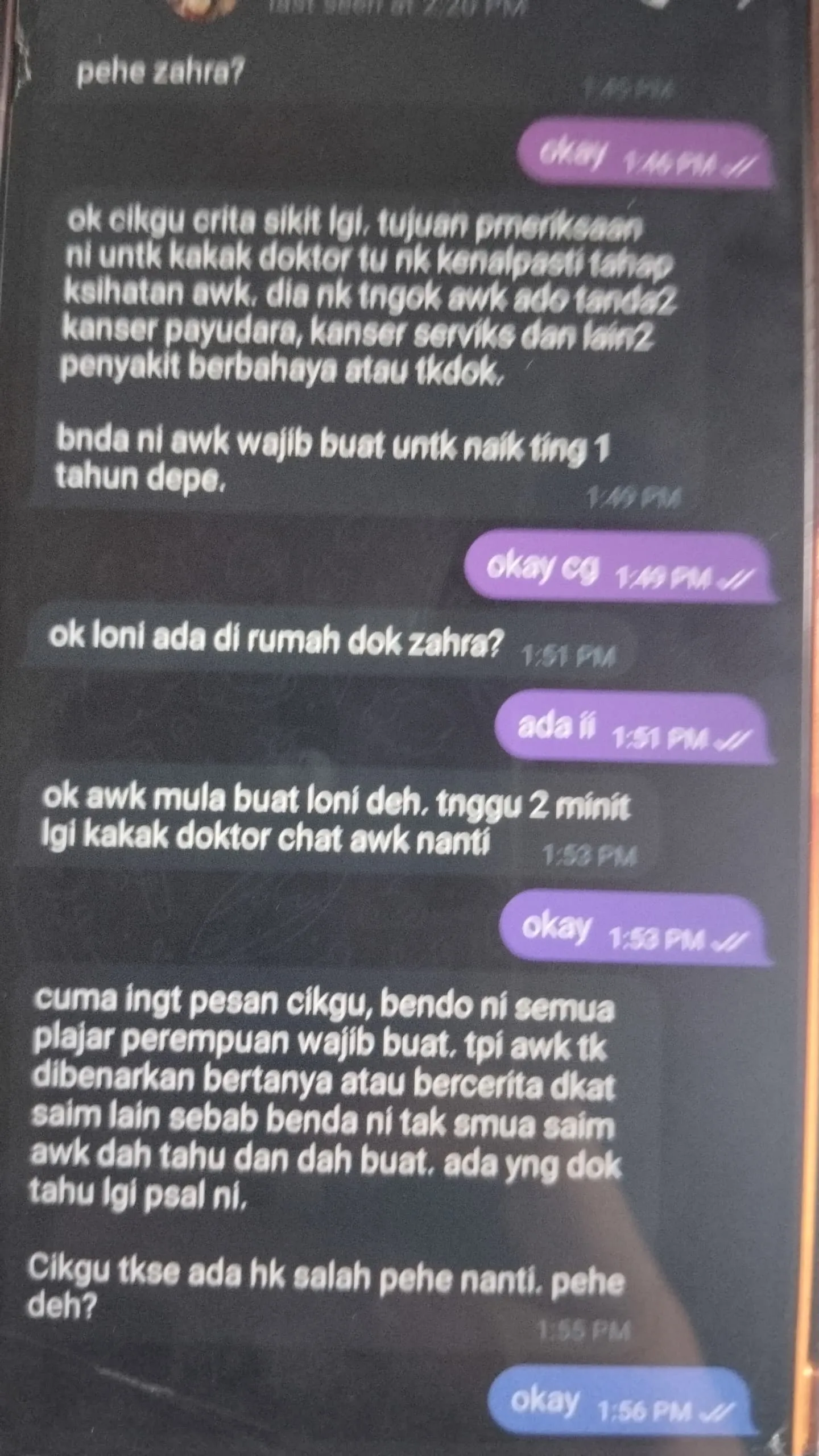 Cikgu ni kata ada Dr. nak buat kajian. Tapi warning sign — jangan bagitau parent, jangan bagitau kawan, wajib buat untuk naik kelas.