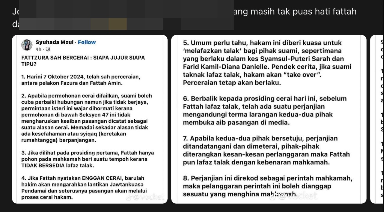 Tidak kurang juga warganet menegaskan hubungan tersebut tidak berlaku semasa tempoh iddah, sebaliknya bermula selepas tempoh itu berakhir pada 13 Disember 2024.