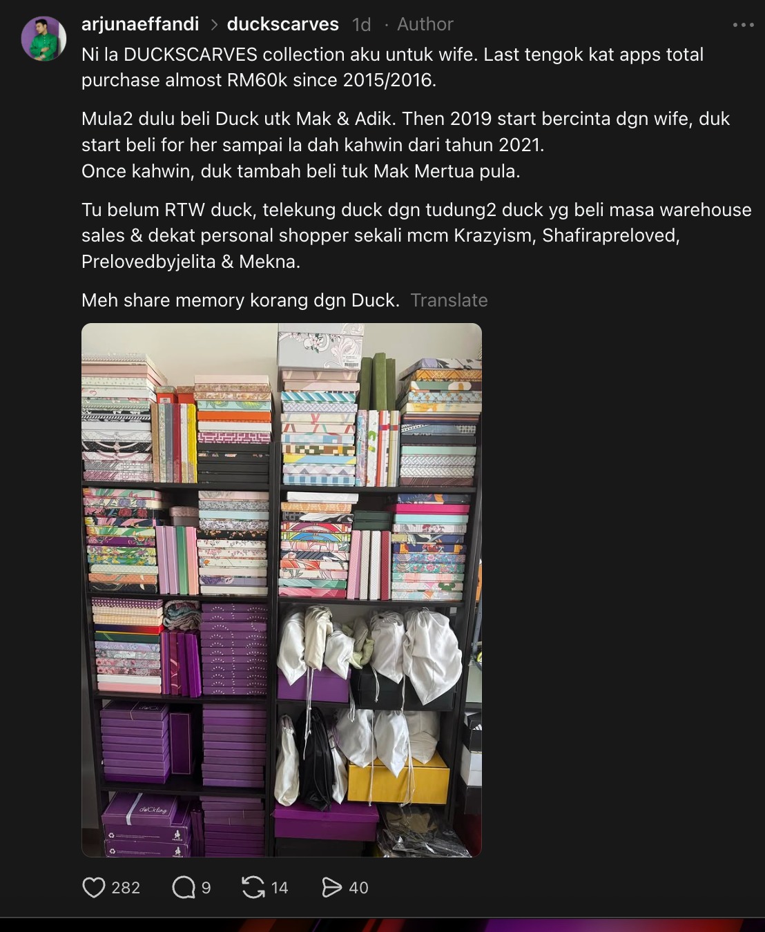 “Sedih sangat lalu depan kedai dUCk di Bangsar ni, masih kosong lagi tanpa penyewa, dekat Pavillion pun dah bertukar jadi RR. Harap sangat satu hari nanti dUCk akan muncul kembali.”