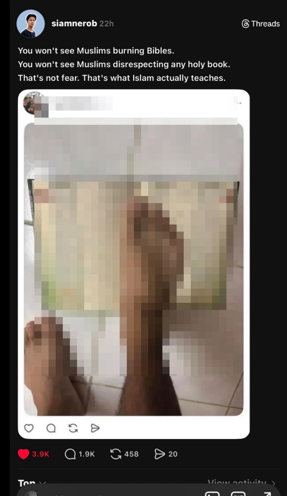 “Saya dengan tegas mengecam perbuatan terbaharu yang melibatkan penghinaan terhadap Al-Quran. Tindakan sedemikian (pijak al-Quran) amat biadab, tidak boleh diterima dan sama sekali tidak mempunyai tempat dalam sebuah masyarakat bertamadun serta berbilang agama seperti Malaysia.”
