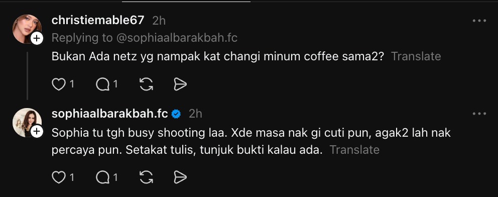 “Mana bukti?? Tunjuk lah. Dr awal tahun Sophia tu busy, ramadan berniaga sampai lepas raya busy masuk shooting.”