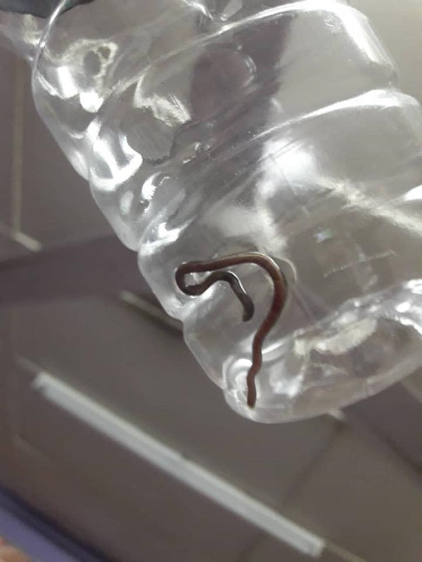 Pihak bomba kemudiannya mengambil cacing itu dan membuang di lokasi berhampiran.