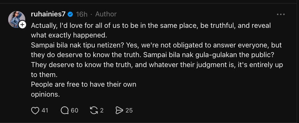 “Sampai bila nak tipu netizen? Ya, kita tidak wajib menjawab semua orang, tetapi mereka berhak tahu kebenaran.”
