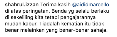 Aidi Marcello yang turut meluahkan rasa yang sama di laman sosial.