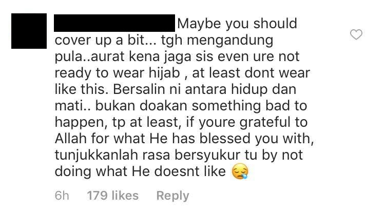 Mereka meminta agar Juliana menjaga aurat ketika hamil dan biarlah kelihatan lebih sopan.