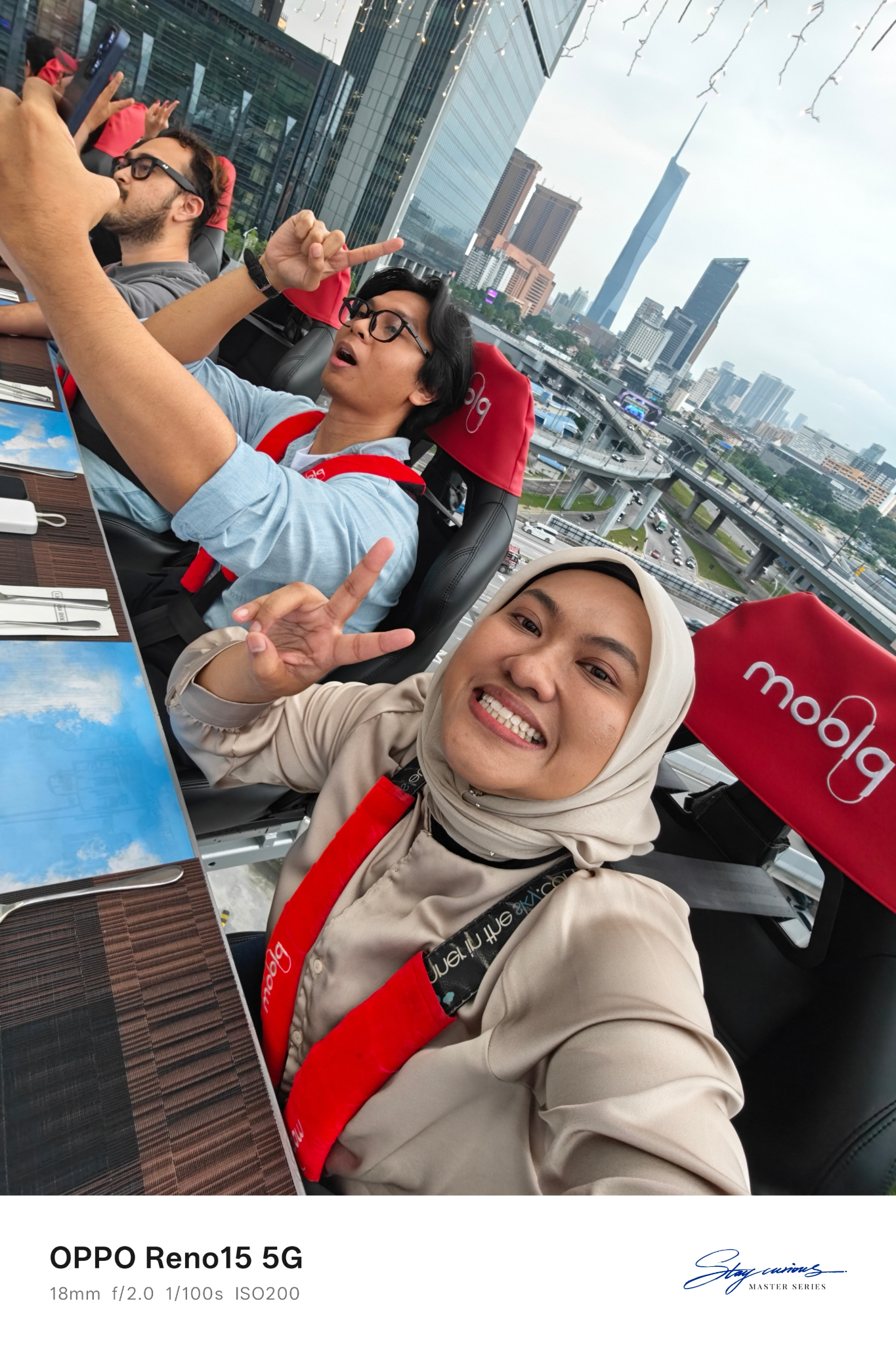 Baik selfie guna 50MP Ultra Wide Selfie Camera OPPO Reno15, siap ada sudut pandangan 100° terluas dalam industri, membolehkan anda untuk tangkap gambar secara beramai-ramai, tanpa perlu effort yang lebih tau. Bestnya!
