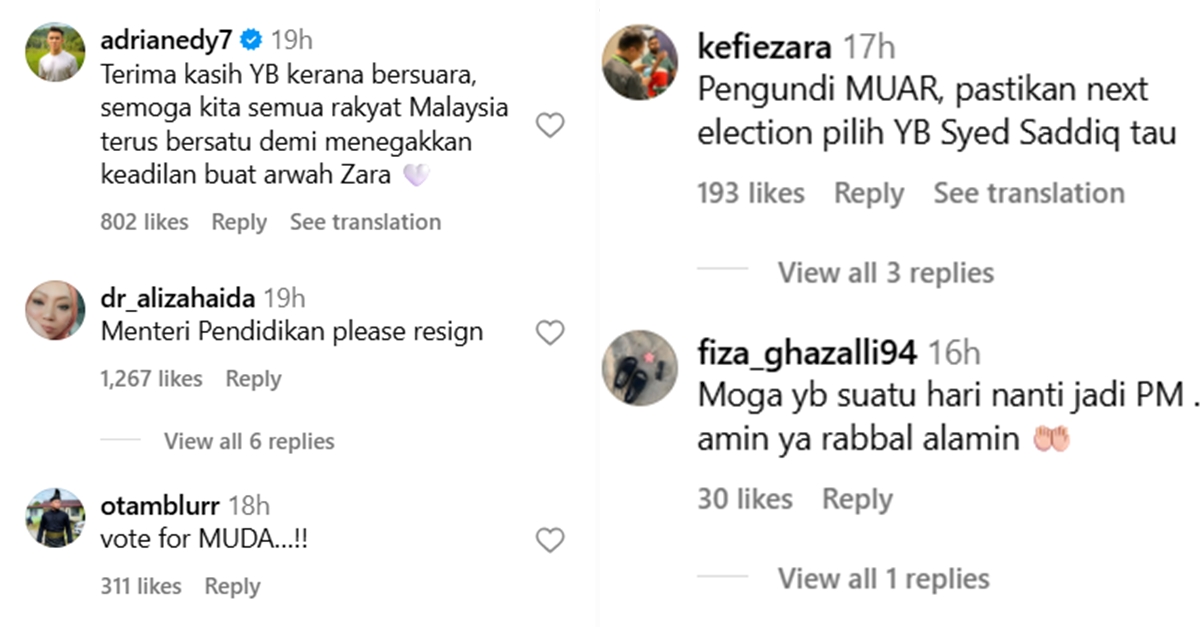 syed saddiq support zara