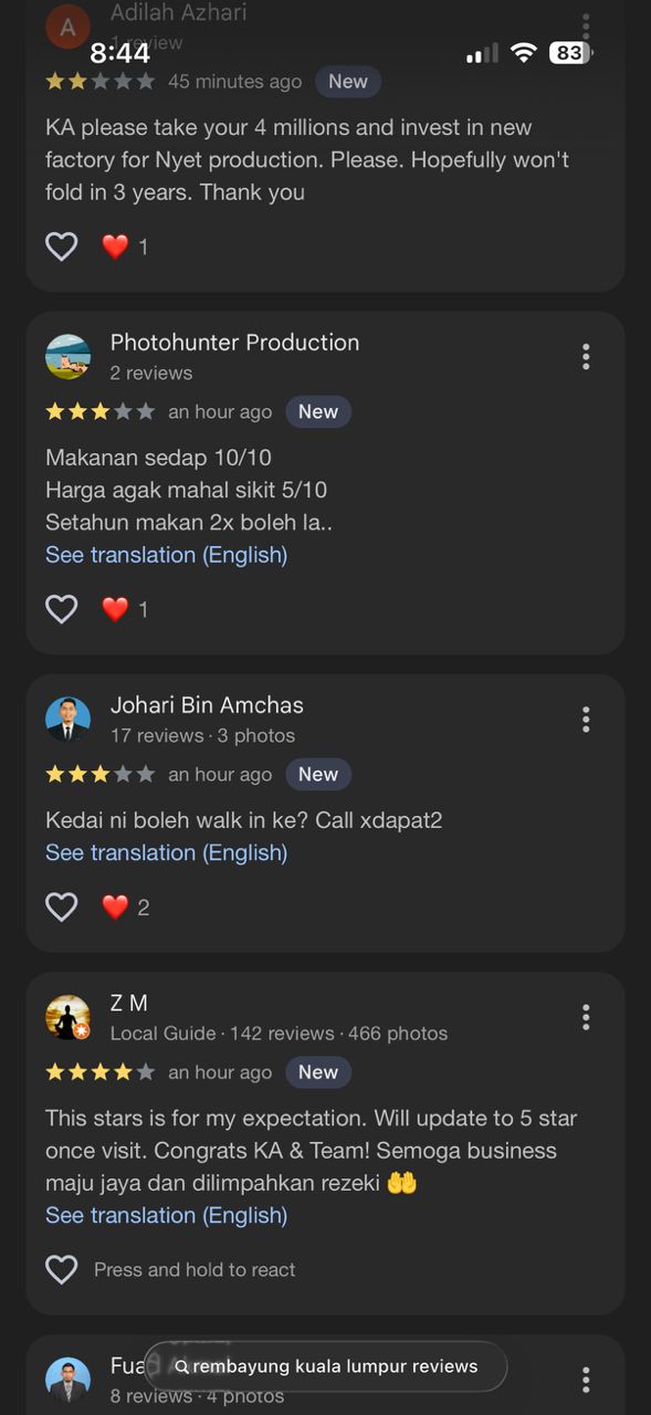 Restoran pertama Khairul Aming, Rembayung, baru sahaja diumumkan semalam tetapi di Google Reviews, sudah muncul beberapa ulasan negatif walaupun restoran itu belum pun dibuka secara rasmi.