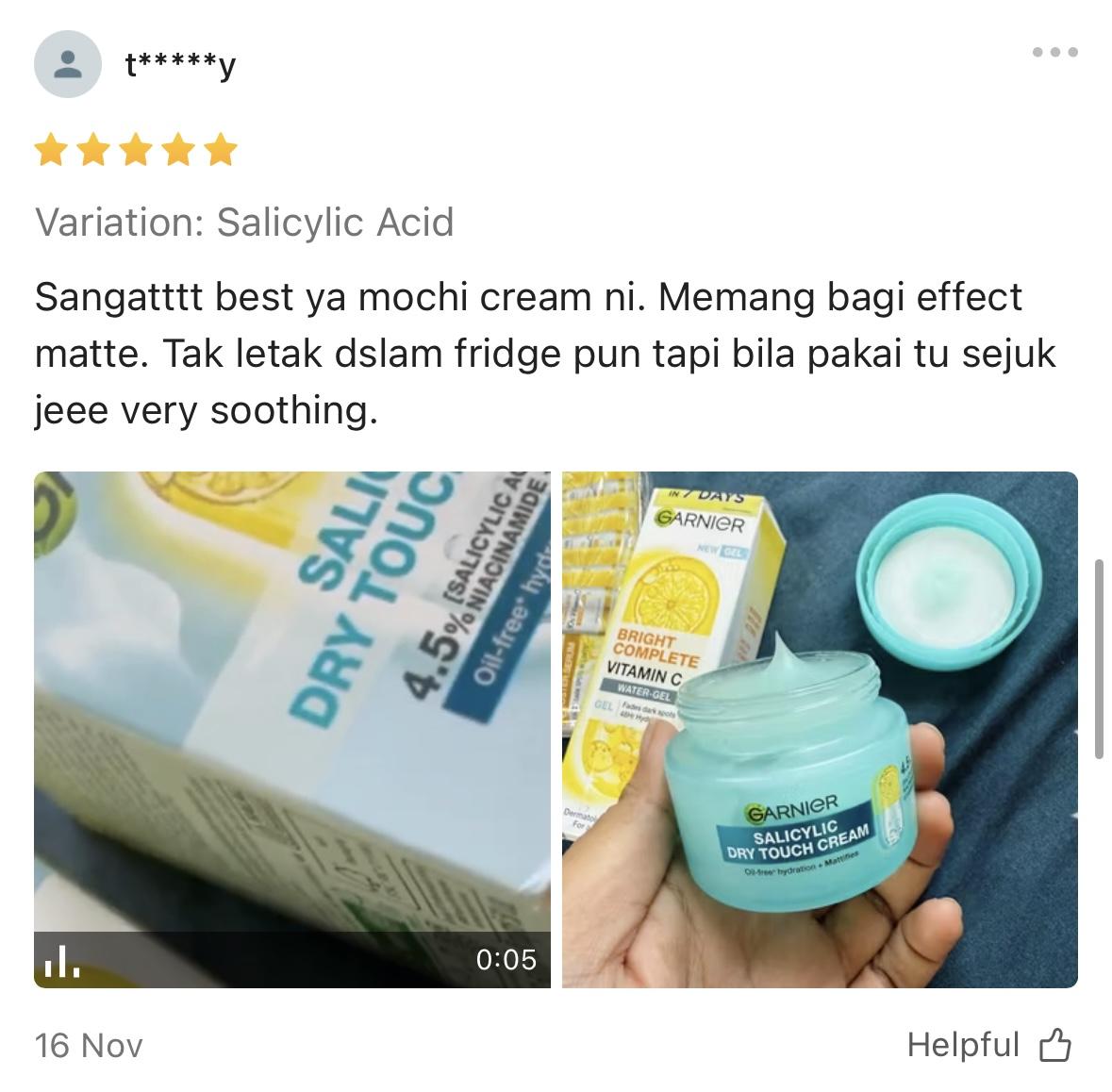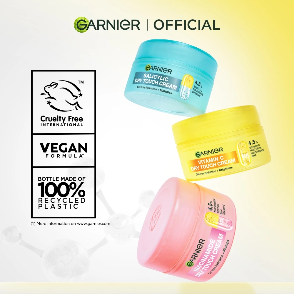 Garnier Dry Touch Cream bukan sekadar pelembap biasa. Setiap satu sapuan, ada gabungan 4.5% Vitamin C, Niacinamide dan Salicylic Acid untuk menjaga kulit wajah anda.
