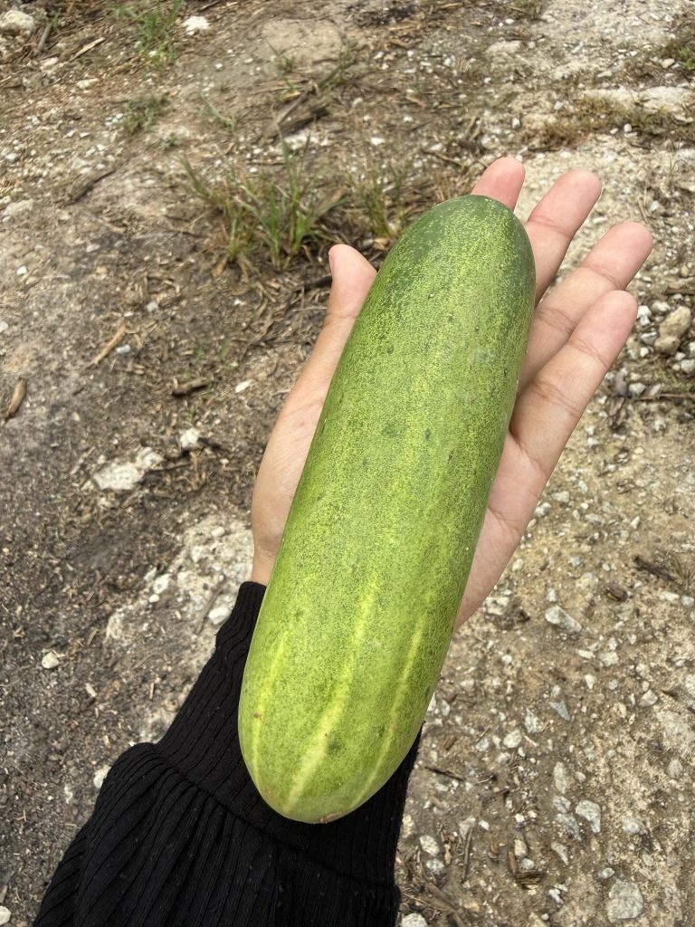 Kebun seluas 1.5 ekar itu menempatkan pelbagai jenis sayur dan ulam-ulaman seperti timun, labu air, kacang panjang, bendi serta sayur maman.